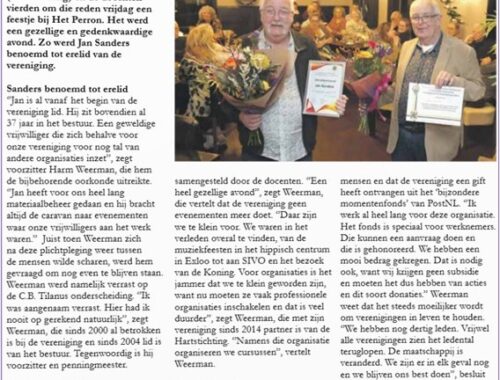 Dinsdag 26 april 2022 is Jan Sanders benoemd tot Lid in de Orde van Oranje Nassau. Burgemeester Seton van Borger – Odoorn reikte de onderscheiding thuis bij Jan uit.